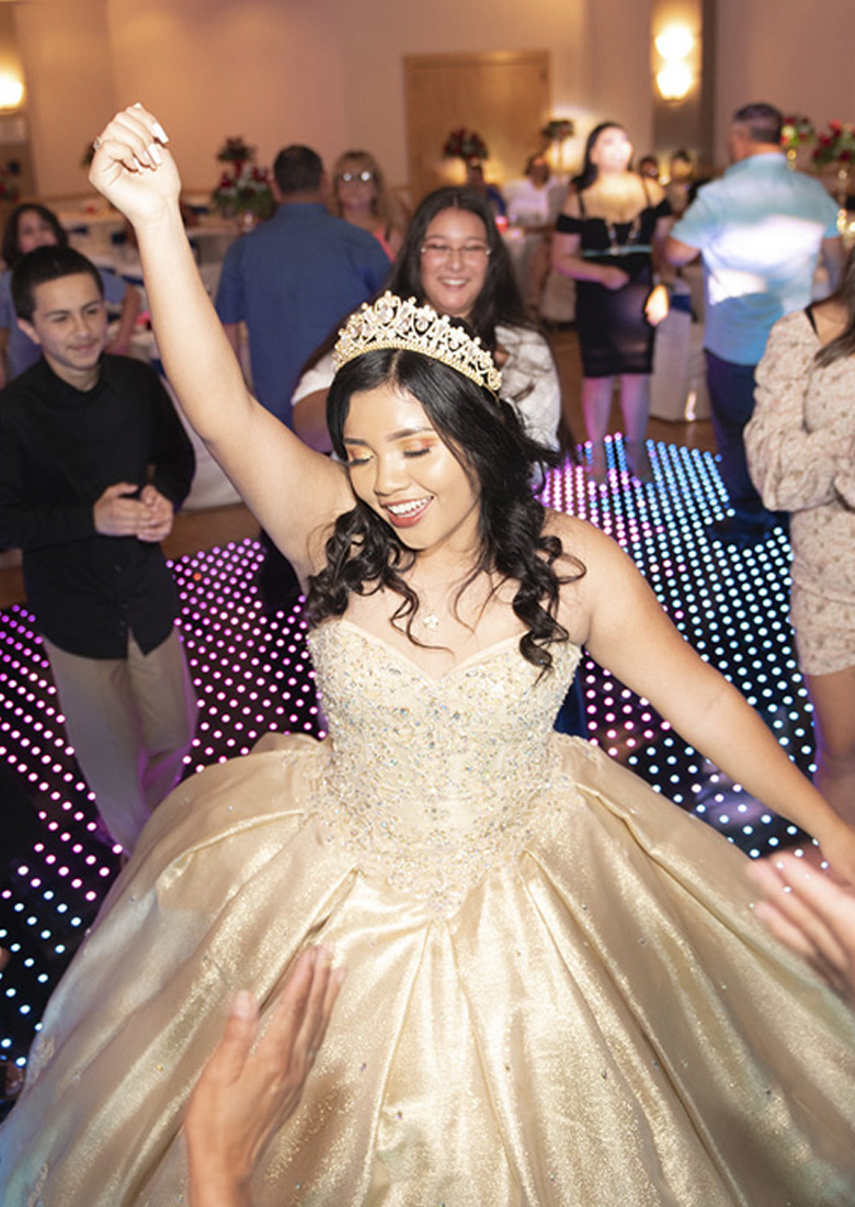 This elegant package offers a well-balanced blend of style and entertainment to create a memorable quinceañera celebration. With carefully selected features that enhance the ambiance and keep the energy high, it provides an exceptional experience without exceeding your budget. Ideal for families seeking quality, beauty, and fun, the Golden Package includes essential services that bring your event to life with charm and joy.